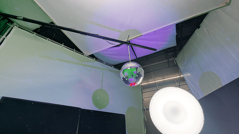 ミラーボールの演出もあり、スポットライトで反射させながら空間を作っております。